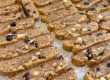 - מרפדים תבנית בנייר אפייה ומעבירים אליה חצי מכמות הפיסטוקים בשכבה אחידה.