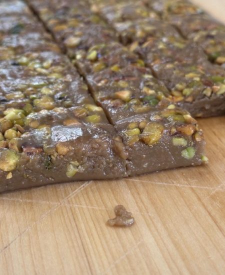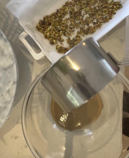 - 3/4 כוס (75 גרם) פיסטוקים טבעיים קצוצים גס