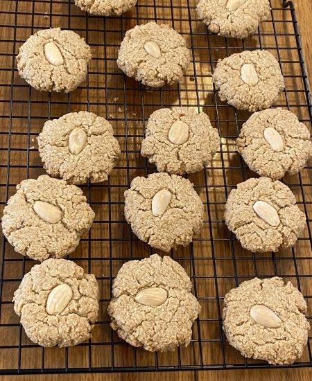 - נועצים שקד בכל עוגיה ואופים כ-15 דקות עד להזהבה קלה.