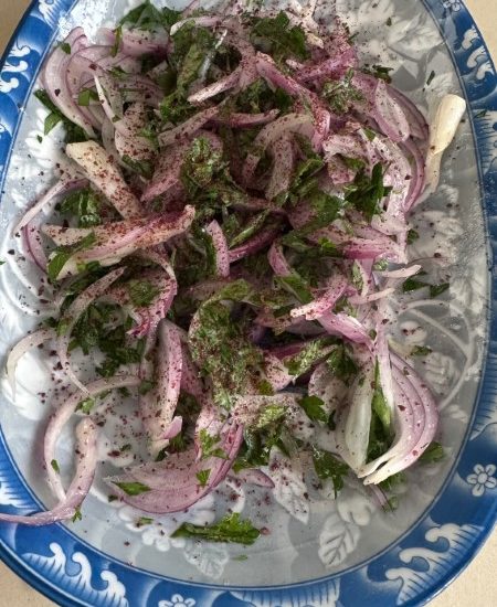 - תבלין סומאק מלמעלה אחרי ערבוב הסלט